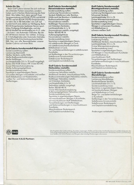 Re: La Golf Cabriolet Sondermodelle