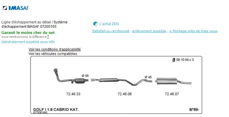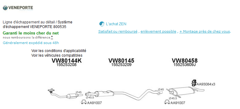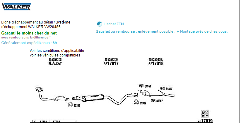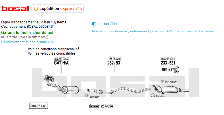 Il suffit ensuite de taper dans Google la marque + la ref numérique qui apparait sur le schéma de la ligne d'échappement pour en trouver son prix parmi les vendeurs du WEB...