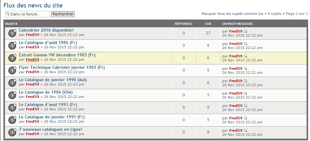 Vous pouvez dorénavant suivre les publications du site web directement à partir du forum pour être tenu a jour des articles, des catalogues et des pages ajoutées sur le site web (Hors forum). Ce flux de news automatique n'es pas disponible sous Tapatalk.
