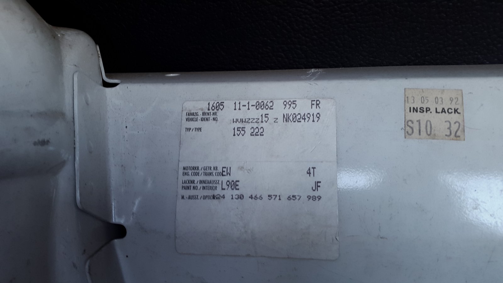 option : Direction assistée (657); antibrouillard arriere (571)+ "raccordement antibrouillard" ( 466 ); siege "non-sport"(989 ) ; ampoule de phare jaune (124 ) ( mais l ancien proprio lui a lis des blancs, il me l avait dit lui meme avant mes recherches de code ) ; ceinture abdominale pour siège ar automatique (130)