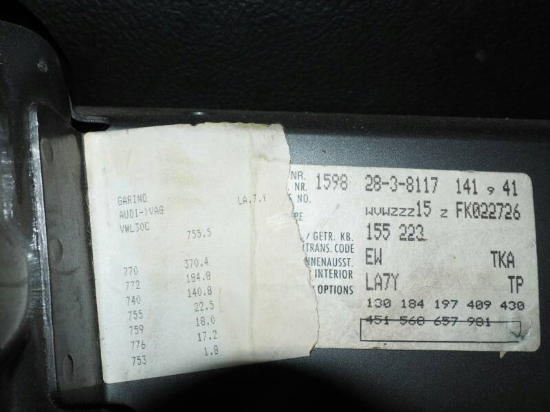 bonsoir à tous les membres. voici l'étiquette de coffre de ma golf du 09/93 1.8 i 98 chvx . j'ai bien lu quelques posts mise à part le code couleur et le type de boîte. je n'ai pas réussi à identifier le reste. merci l'équipe
