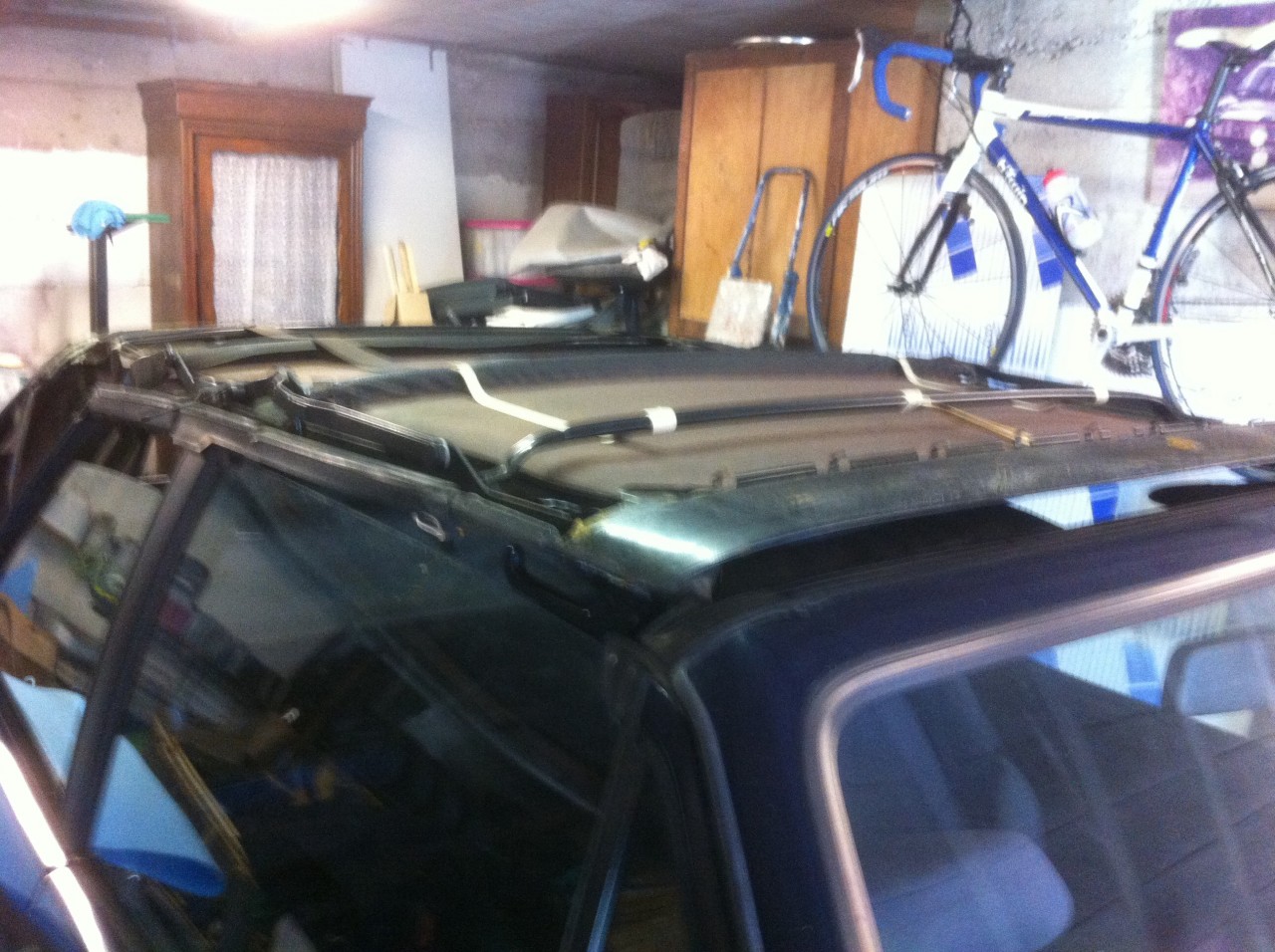 On positionne la capote bleu alpaga et on commence l encollage, câble et rail a remonter