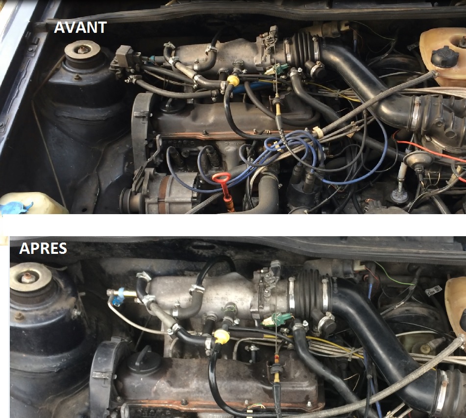 -Certaines durites utilisées pour le système antipollution d'origine ont été supprimées (voir photos ci dessous avant-après). Elles ajoutaient inutilement des micro prises d'air et perturbaient les flux d'air.