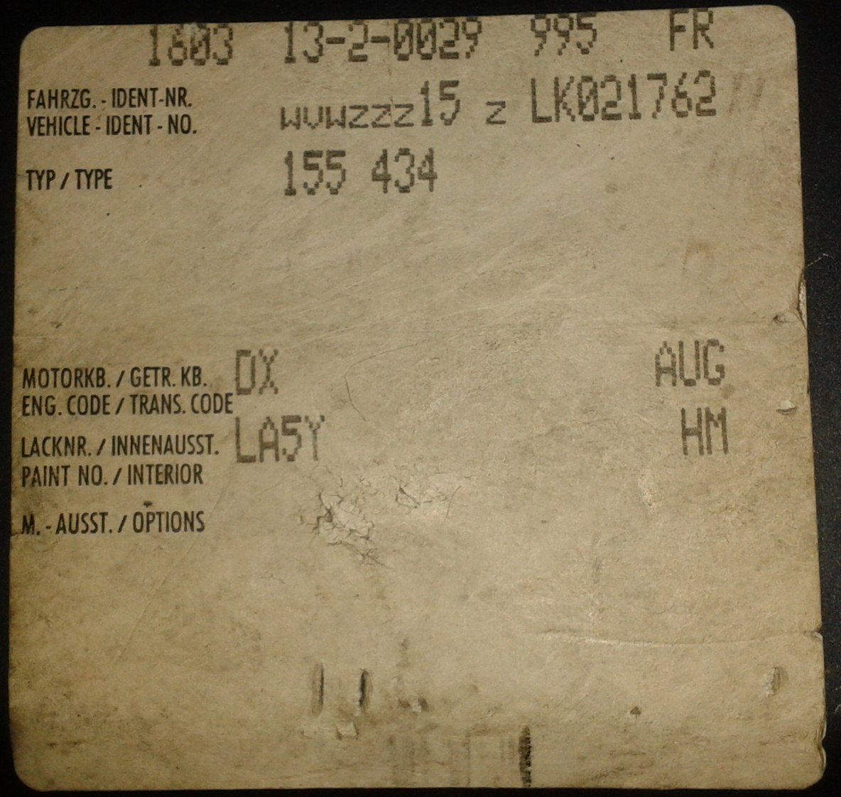 Il vient de m'envoyer son étiquette de coffre et a été produite juste après la tienne et c'est exactement la même !