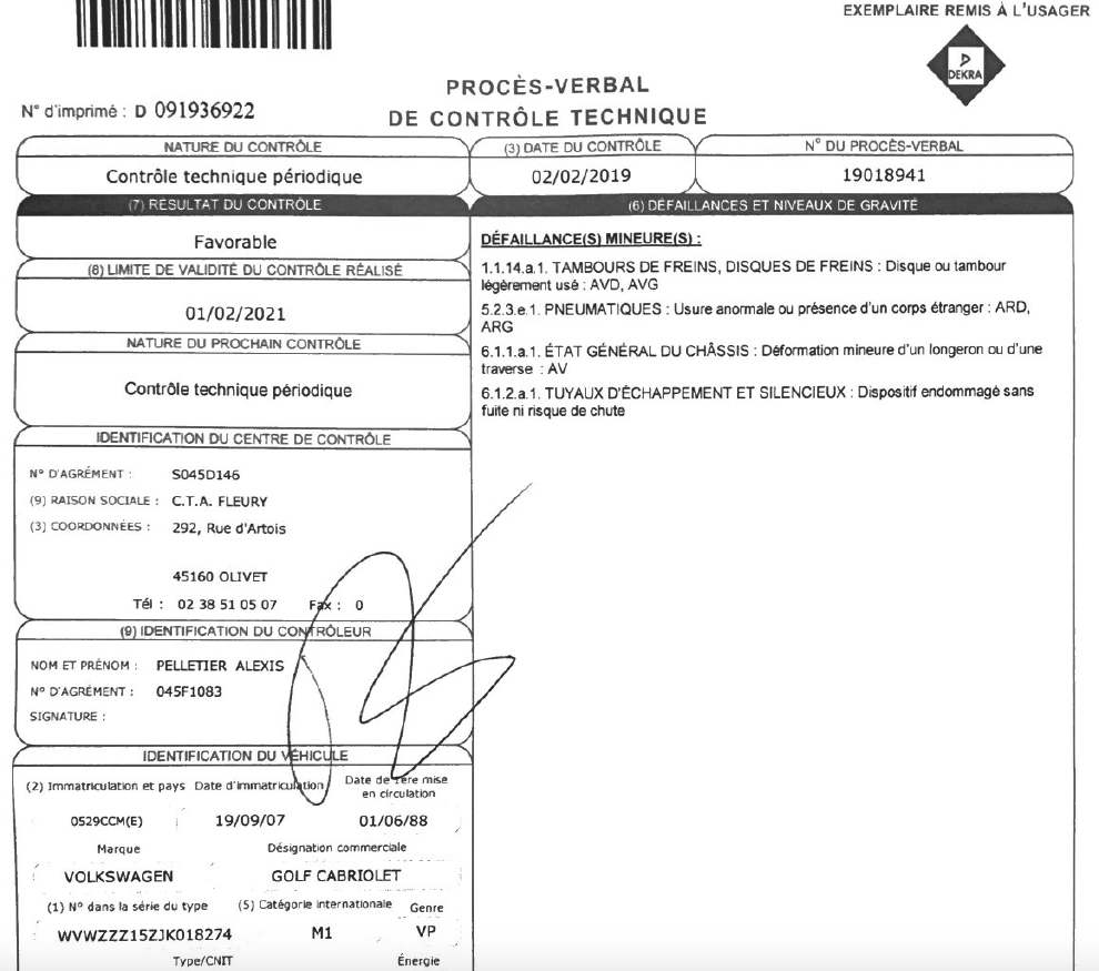 La déformation d'un longeron est à souligner et le CT n'est plus valable et sera à refaire avec les nouvelles normes.