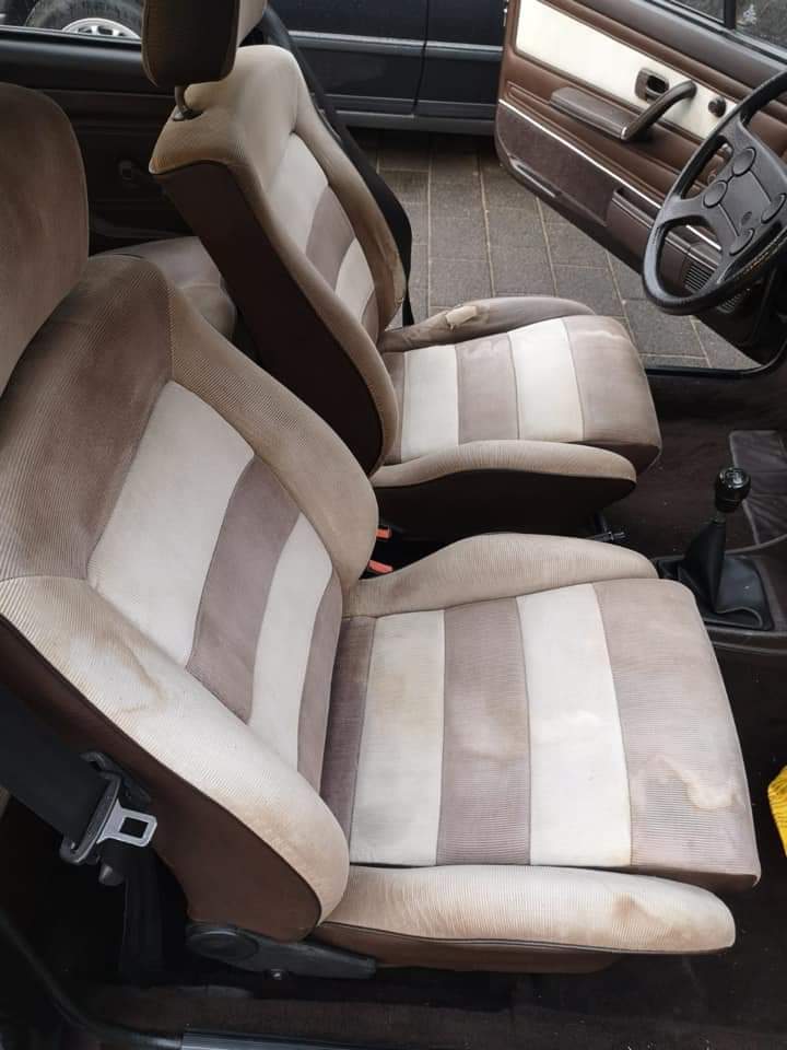 La sellerie a été refaite avec un tissus très proche de l'origine, et quelques libertés sur les panneaux de porte.