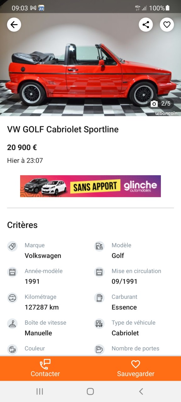 Il faudra bientôt changer le titre de la rubrique en " Golf 1 Cabriolet .... belles occasions au-dessus de 20.000 €"