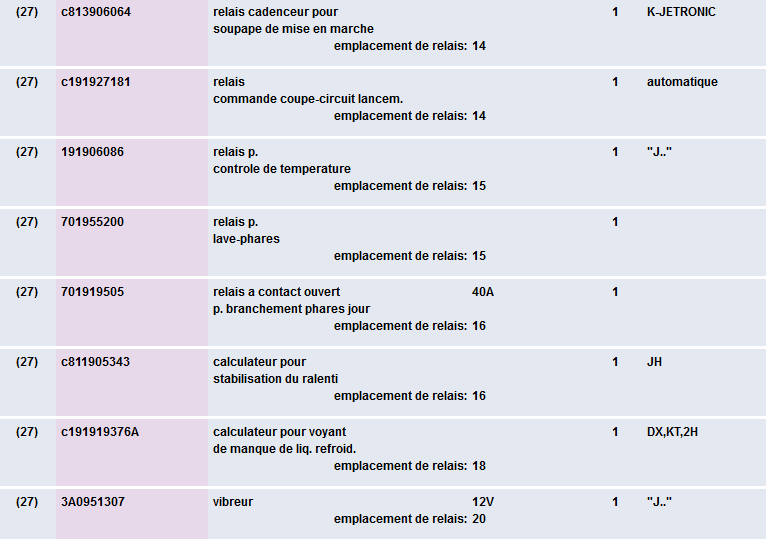 J ai bien trouvé la photo de la boîte à fusible 1983-1984 au sein du sujet avec les relais 17,19 et 21 juste au dessus des fusibles mais je suis perdu sur quel fusible est dédié à cette ventilation habitacle et quel relais,