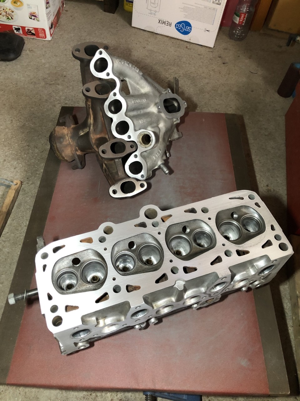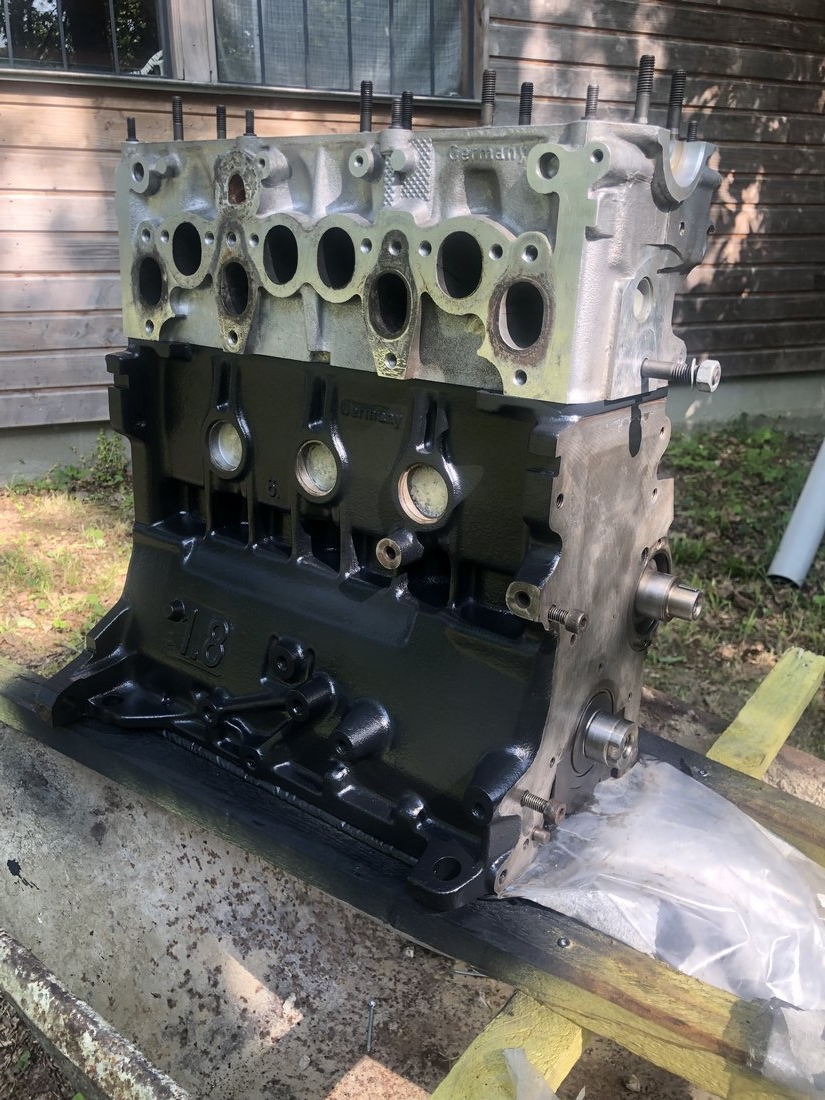 Beaucoup de pièces changées, bien sur des segments neufs, des coussinets de bielle neuf, un déglaçage des cylindres, un rodage des soupapes,... mais aussi "blanchiment" des portées sur marbre pour culasse, bloc, collecteurs d'échappement et d'admission.