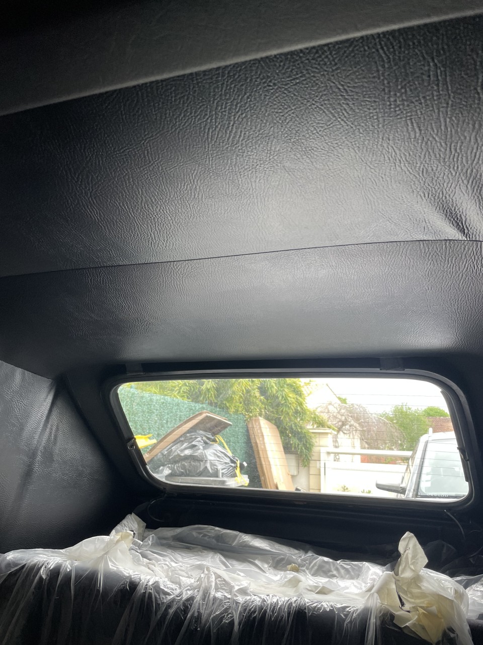 Du coup protection de l’intérieur avec bâche et scotch carrossier et c’est partit.