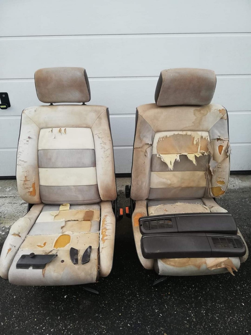 La sellerie a été refaite avec un tissus très proche de l'origine, et quelques libertés sur les panneaux de porte.