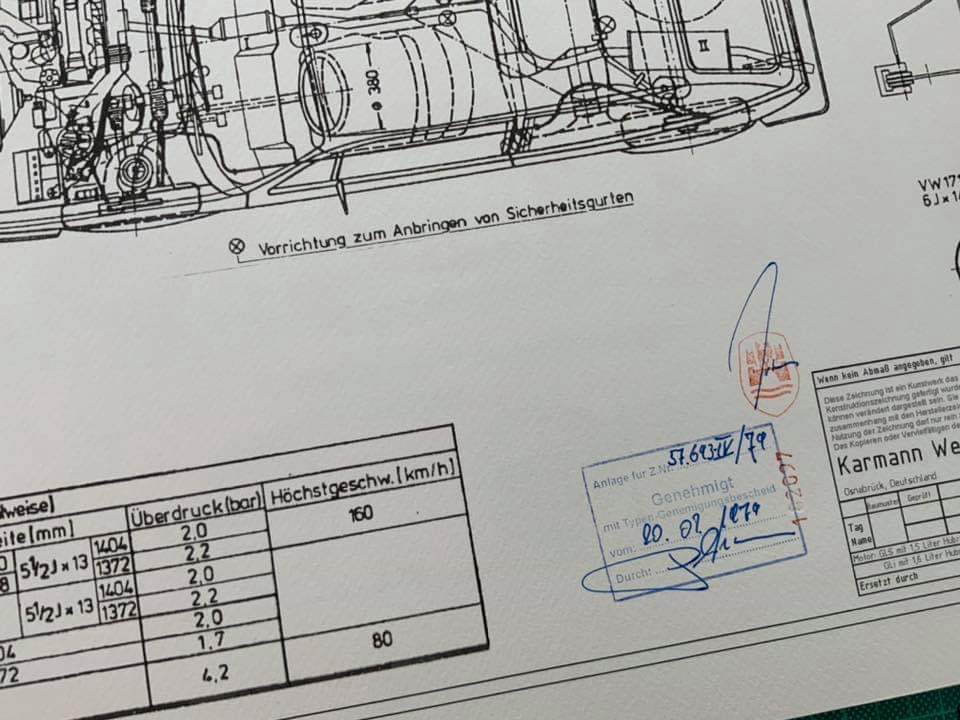 Les vrais plan de conception de l’époque datés et signés par l'usine Karmann...