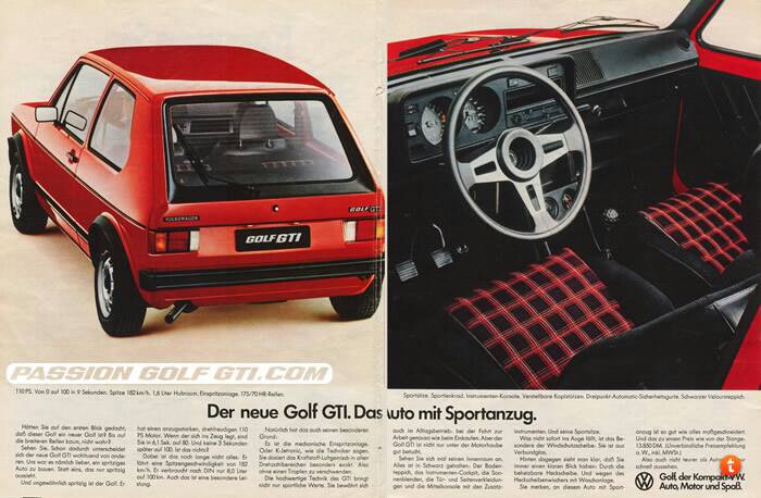 Septembre 1975 : La Golf Sport est présentée en mème temps que l'AUDI 80 GTE au salon IAA de Francfort. Elle se nomme GOLF GTI.
