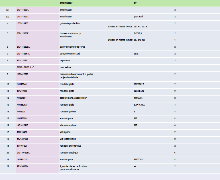 La troisième planche montre toutes les références de couleur sur les amortisseurs.seb62 a écrit : dim. févr. 18, 2018 18:00 pm Bonjour
