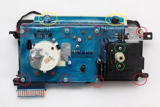 Ensuite soulevez la partie arrière des compteur et il doit vous rester ceci, retirez les 3 visses en bleu: