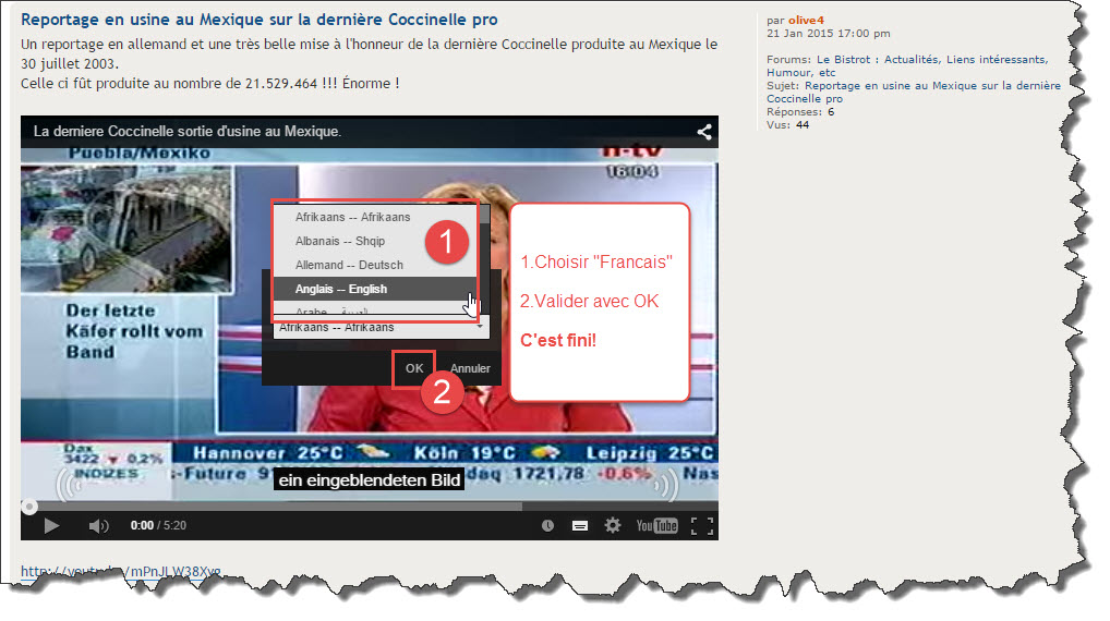 Re: Traduction en Français des vidéos Youtube étrangères