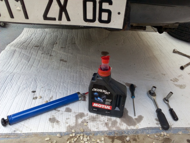Avec la seringue, ajouter 2,5 litres d'huile ATX par le troue de la jauge.