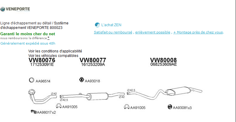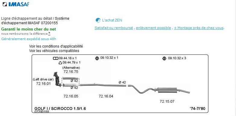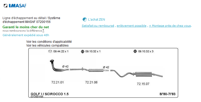 Il suffit ensuite de taper dans Google la marque + la ref numérique qui apparait sur le schéma de la ligne d'échappement pour en trouver son prix parmi les vendeurs du WEB...
