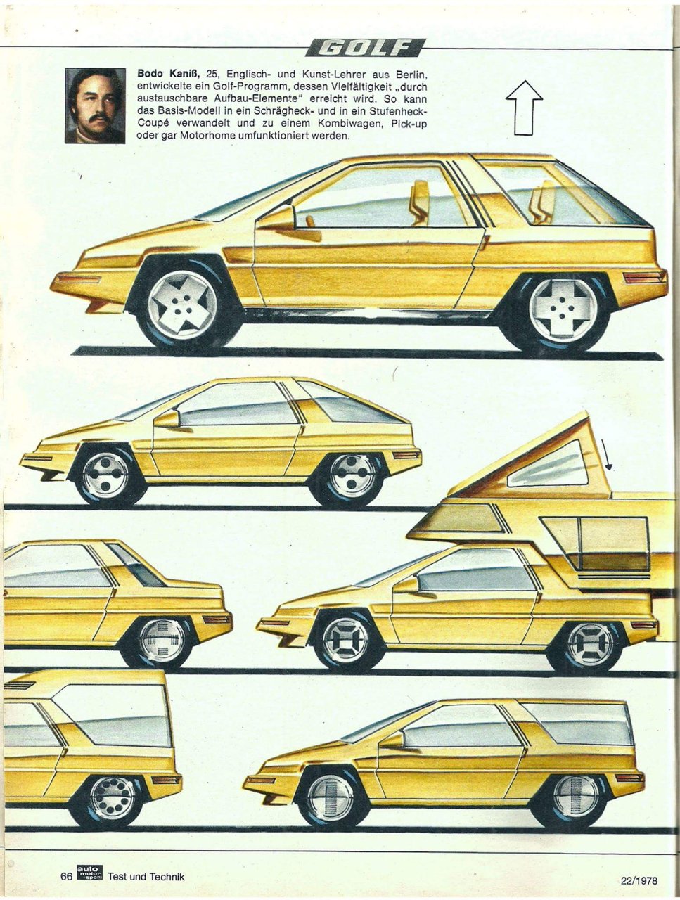 Dans ce journal datant de 1978, donc avant la sortie de La Golf Cabriolet, on peut voir des esquiisess dans le sujet "La golf de demain" et des projets pour certains aboutis.