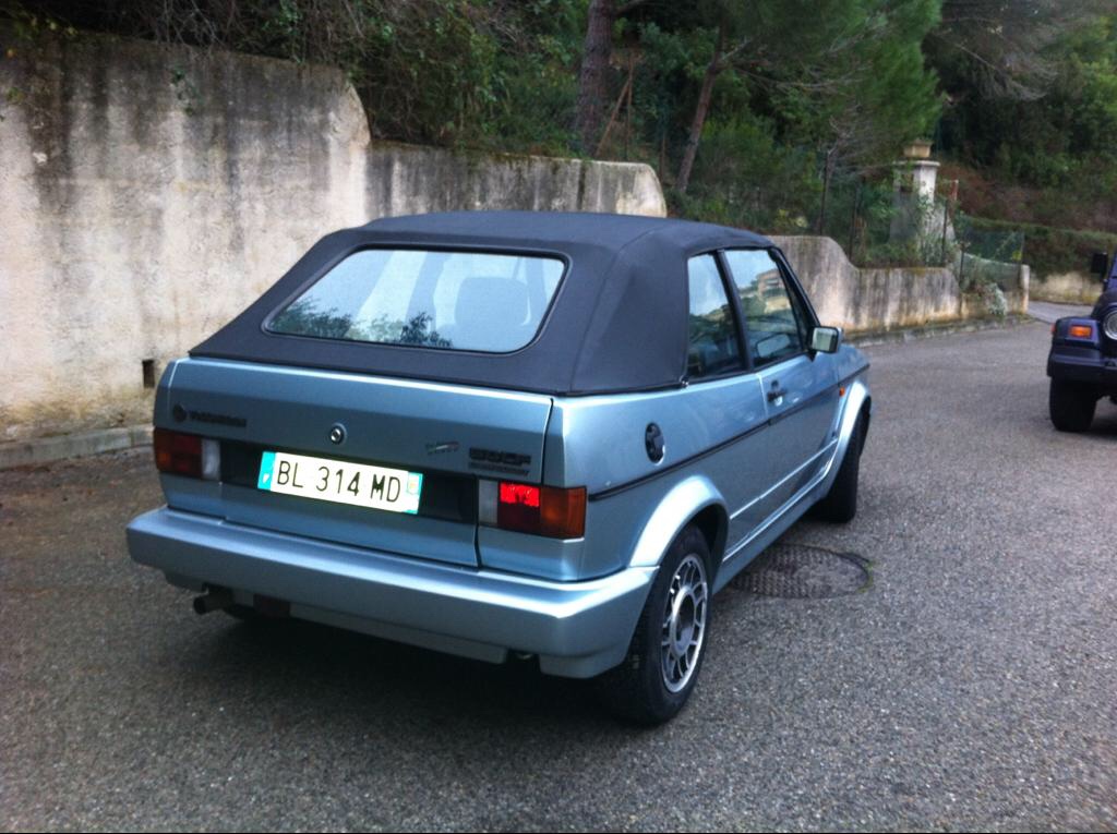 Hello. C’est la golf d’un ami. La capote a effectivement été changée et le kilométrage est réel. Deuxième propriétaire. Elle a quelques prob de rouille sur la portière gauche mais il a une portière en attente si la personne souhaitait la changer (il garde en état car la voiture est en première peinture).