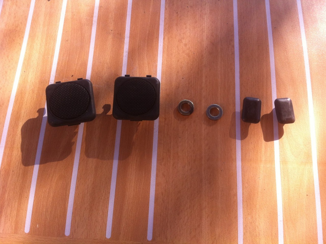 les carrés plastiques sont des caches pour capotes électriques et les rondelles sûrement pour la fixation des hp d origines.