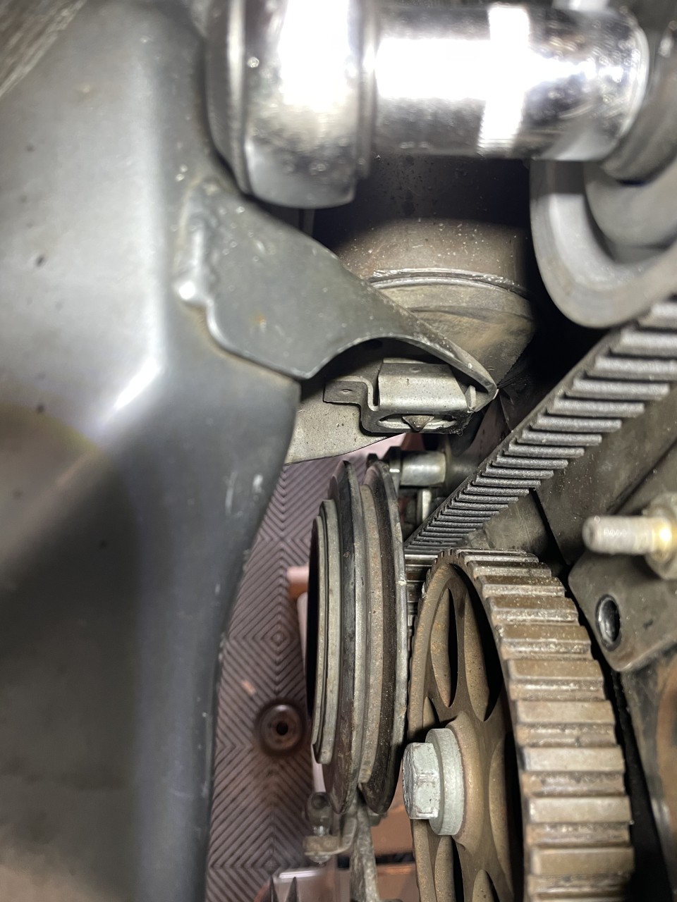 La roue crantée de l’AAC est bien au niveau du plan de joint, là où j’ai un doute c’est sur le calage de la poulie de villebrequin et la roue crantée d’accessoire.