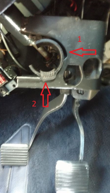 A noter : la position du ressort de rappel et de l’entretoise de la pédale de frein