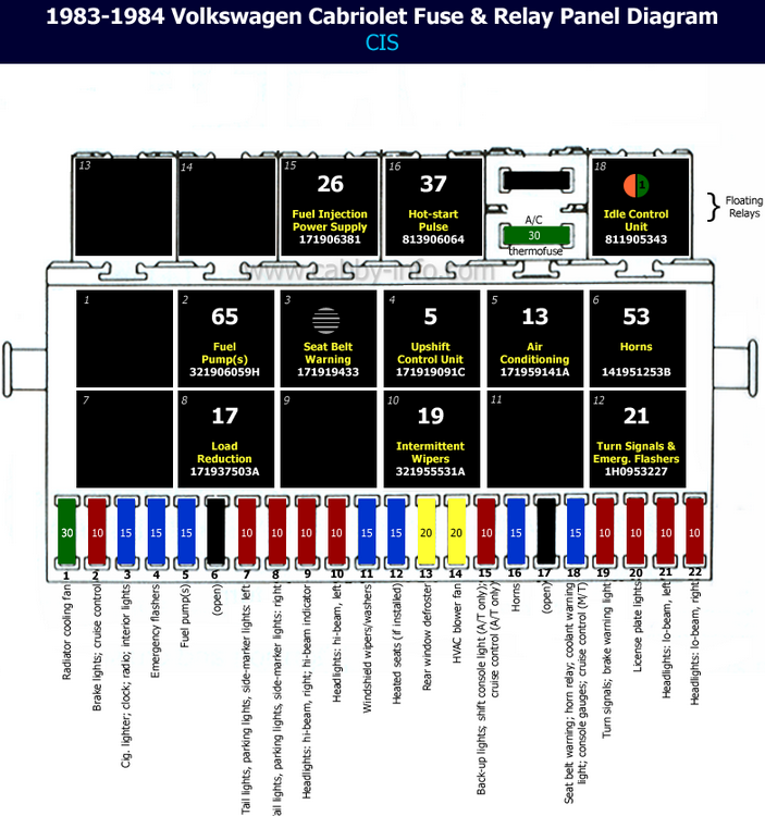 J ai bien trouvé la photo de la boîte à fusible 1983-1984 au sein du sujet avec les relais 17,19 et 21 juste au dessus des fusibles mais je suis perdu sur quel fusible est dédié à cette ventilation habitacle et quel relais,
