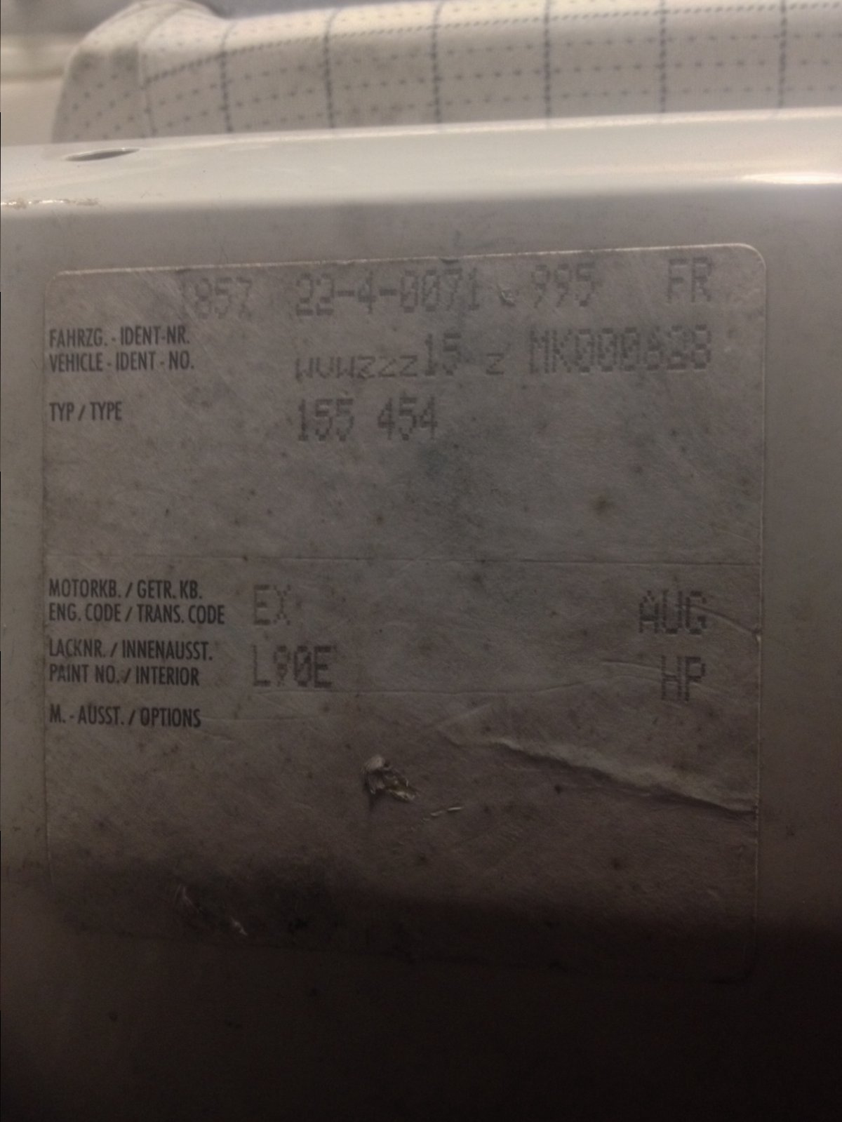 Voici mon étiquette de coffre... je pense que ma one a fait du chemin pour finir en Belgique....