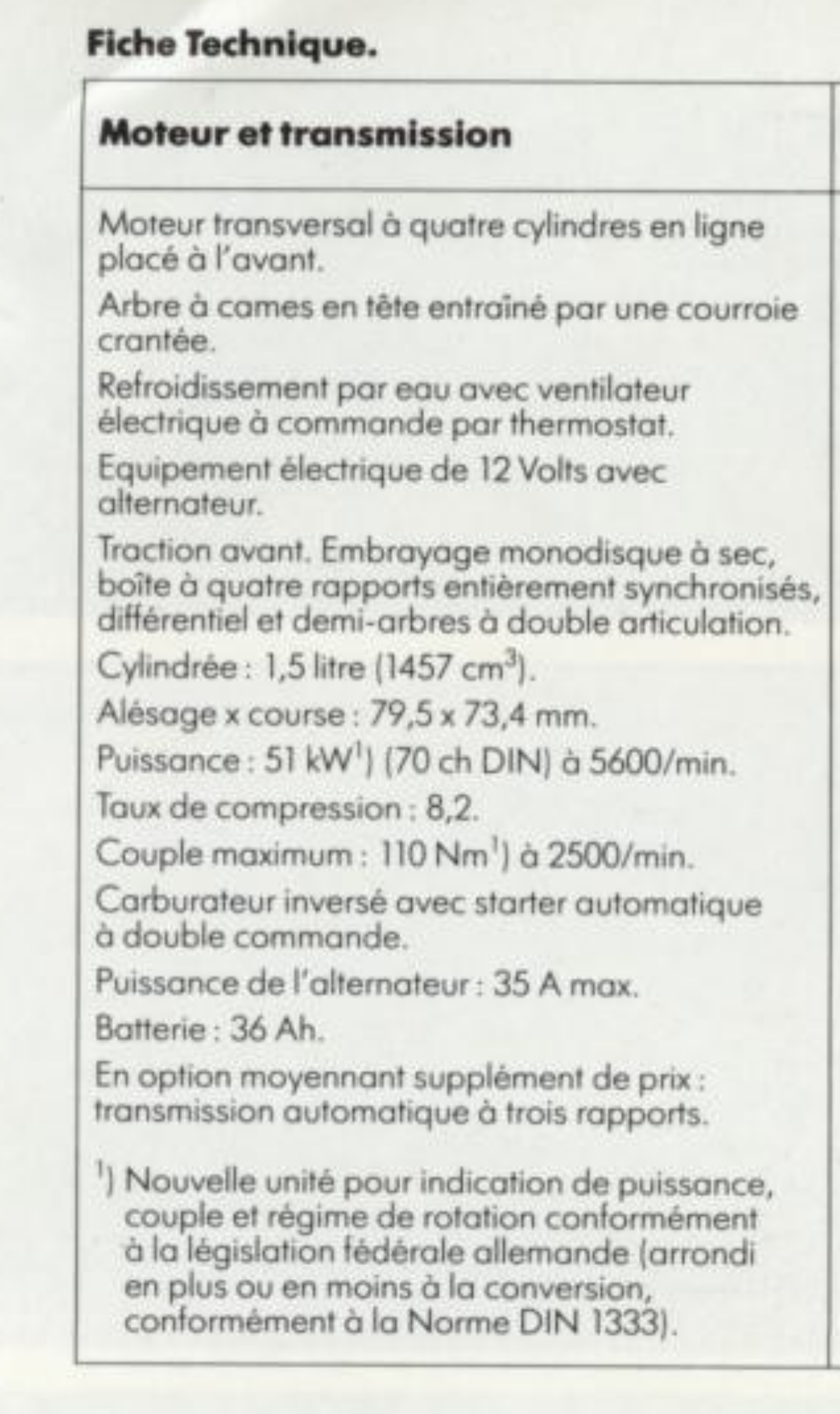 En automatique, il s'agit certainement du 1.5L dont je te joint les caractéristiques.