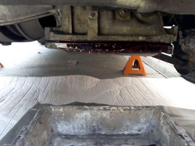Un bac pour récupérer l'huile ( Moi j'ai une Auge de maçon, histoire de brouiller les pistes)