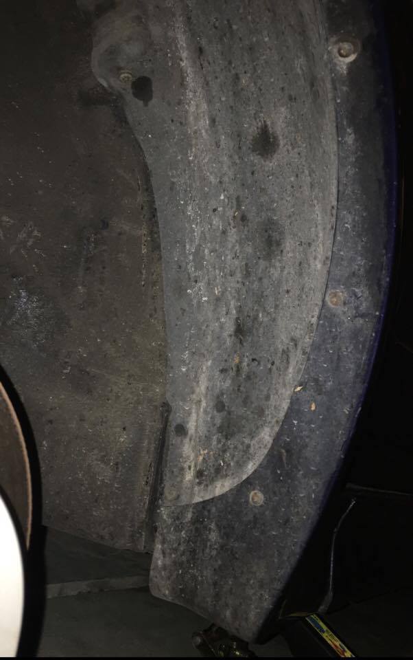 déposer le passage de roue et l'aile karmann (attention à la vis en dessous et la patte qui le fixe au bas de caisse - flèches blanches) étape 2 :