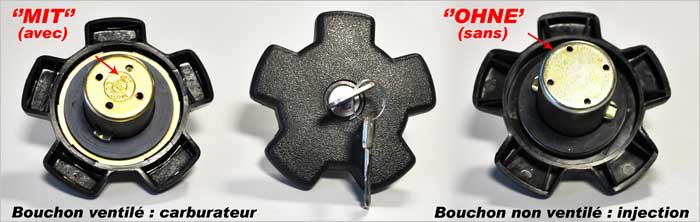Moi, mes deux golf moteur carbu EX de 1990 ont un bouchon ventilé sans clapet comme la dernière photo. J'ignore par contre s'ils sont d'origine ou remplacés...