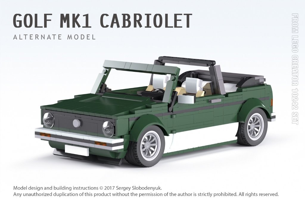 Vous pouvez créer vous même une Golf 1 cabriolet en LEGO. Il existe plusieurs modèles sur le net, mais l'on ne trouve quasiment jamais la notice de montage qui va avec. Peut être qu'un jour la société LEGO sortira un modèle officiel, qui sais?