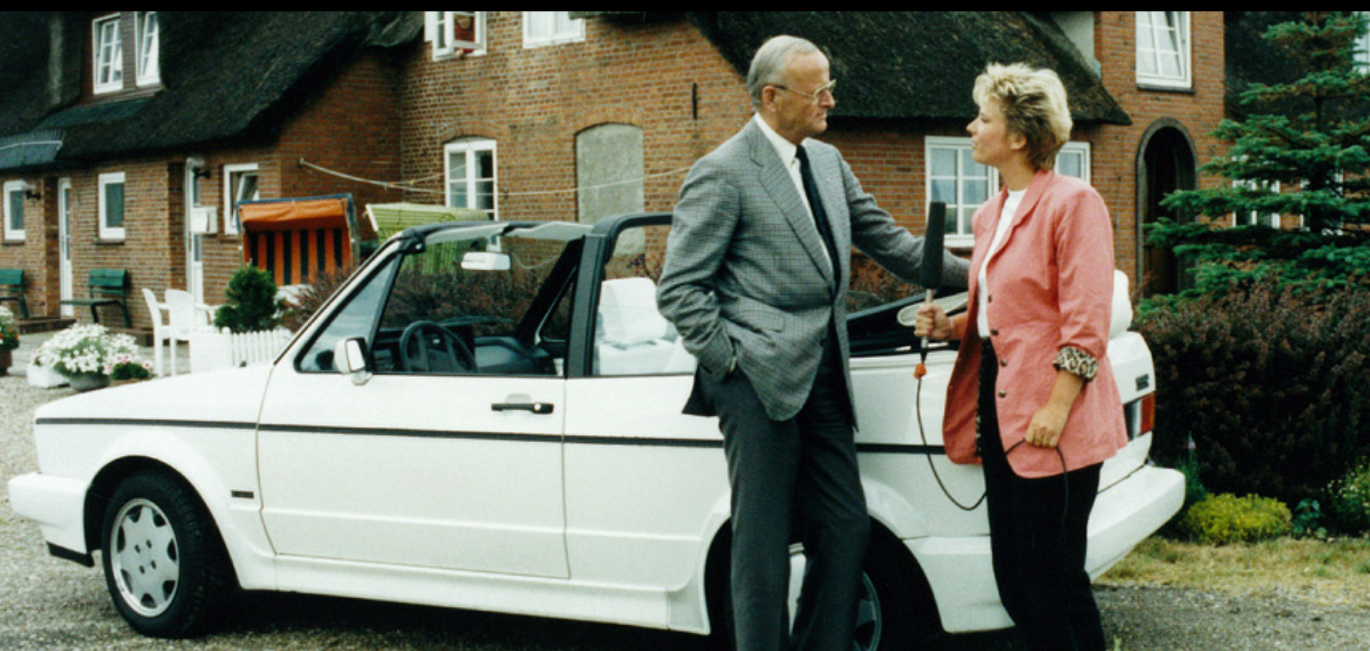 Cela conduit fin 1989 le PDG de Volkswagen le Dr. Carl H. Hahn (à gauche) et Christiane Karmann et Wilhelm Karmann l'ex PDG à une interview.