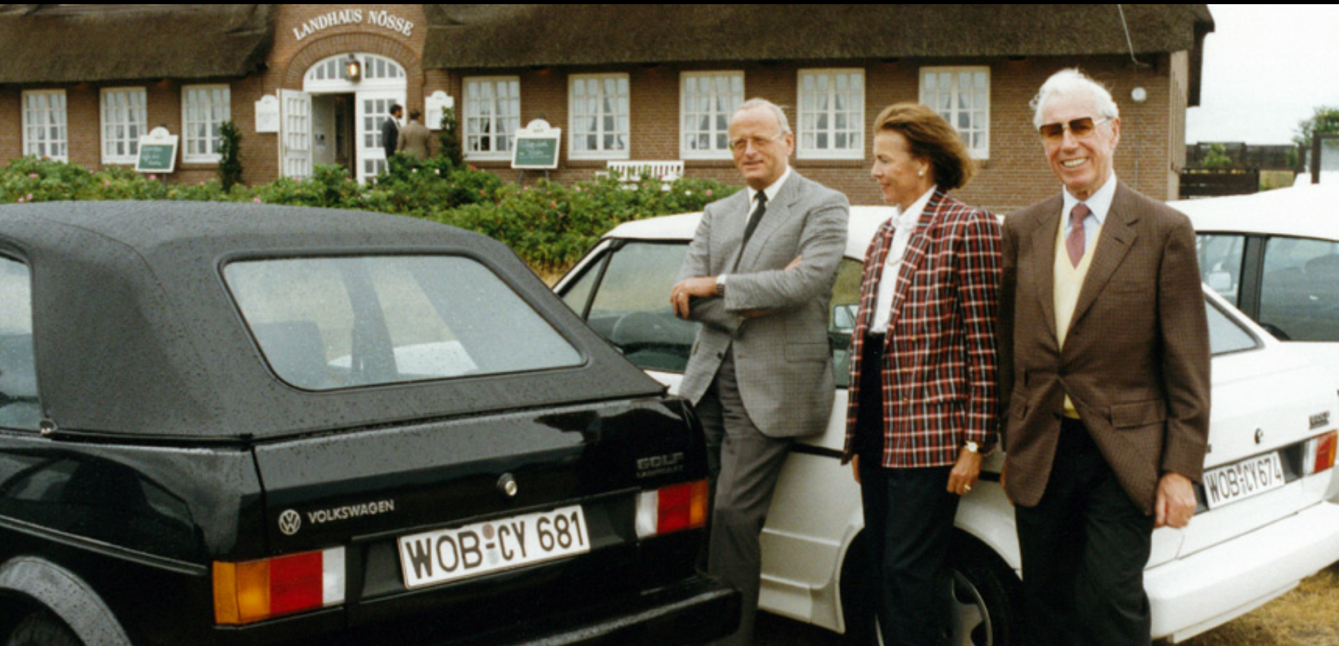 Cela conduit fin 1989 le PDG de Volkswagen le Dr. Carl H. Hahn (à gauche) et Christiane Karmann et Wilhelm Karmann l'ex PDG à une interview.