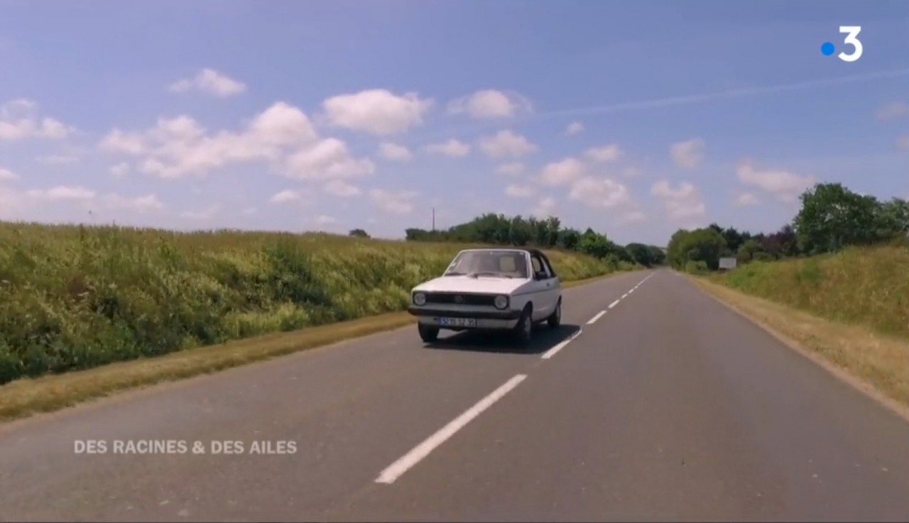 Des racines et des ailes, un jeune chef qui possède une petite golf cabriolet blanche
