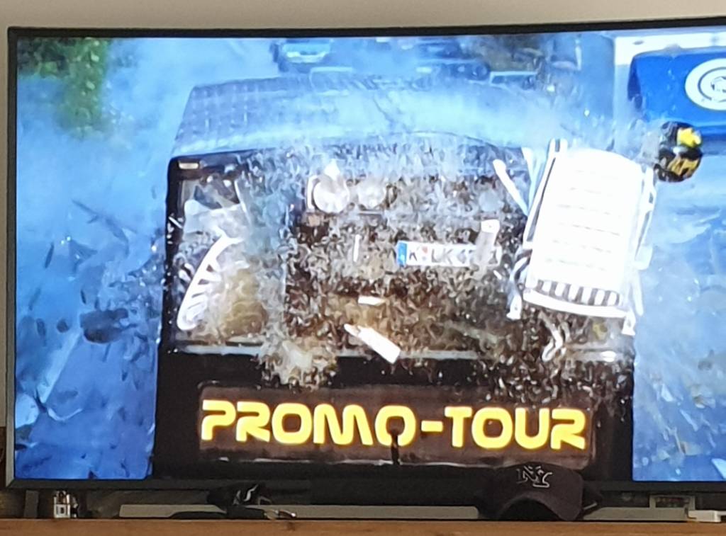 Dans la photo avec l'explosion, il s'agit de la voiture du milieu. Oui oui je vous assure