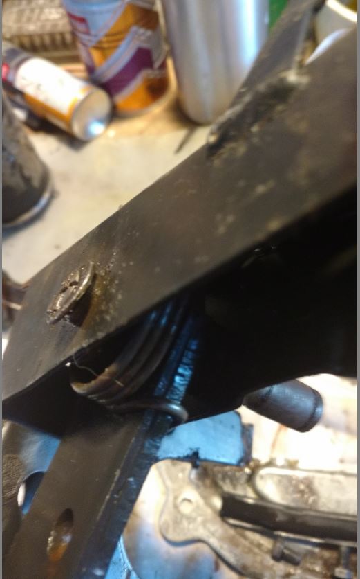 A noter : la position du ressort de rappel et de l’entretoise de la pédale de frein
