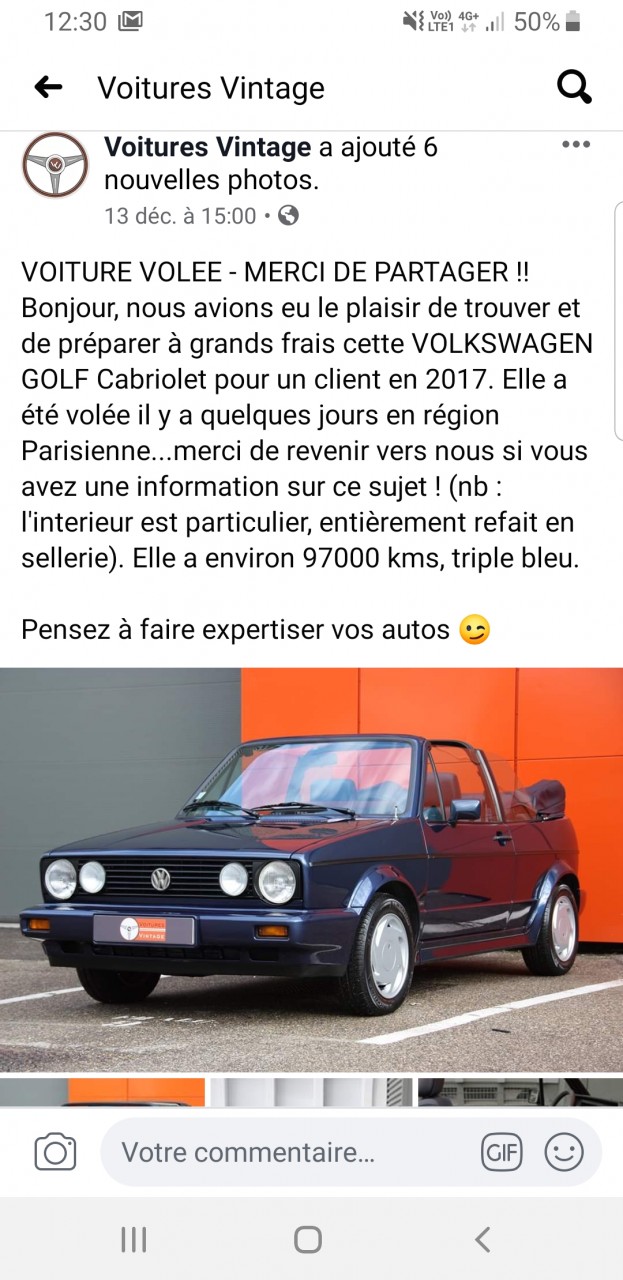 Un nouveau post permettant de recenser les Golf 1 cabriolets volées.