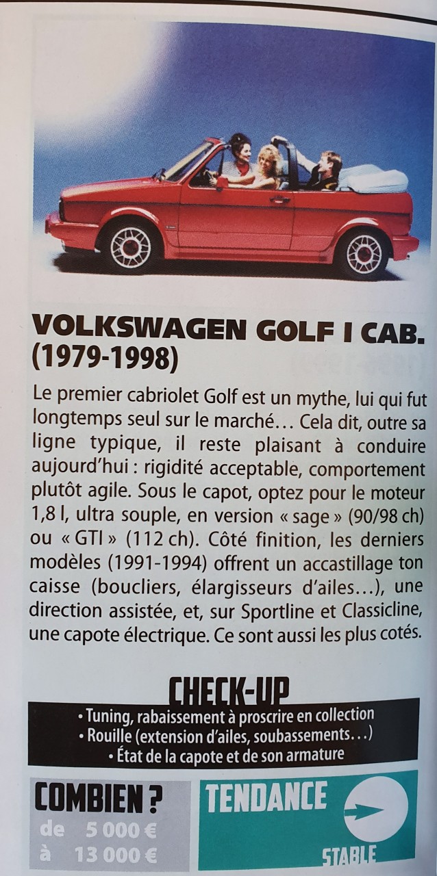 - Voiture : Golf 1 cabriolet
