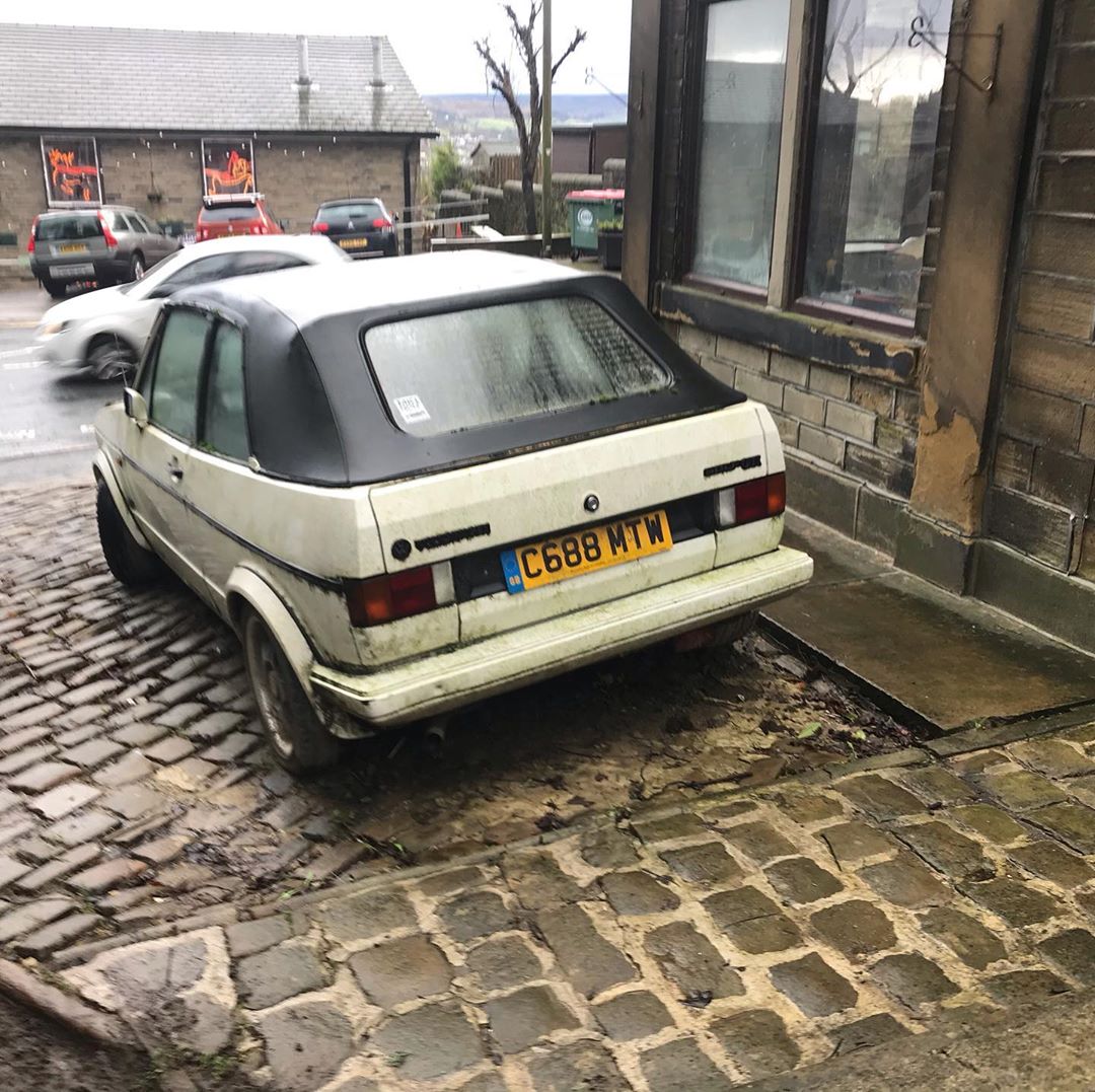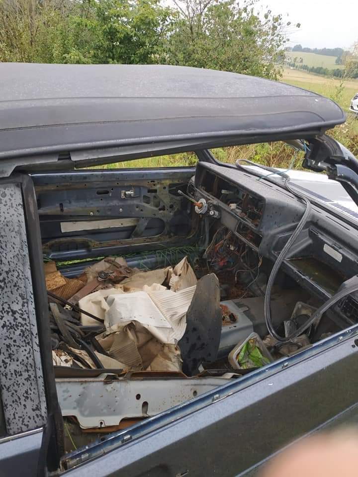 Allez, on va dire abandonné dans un parking, sans plaques d'immatriculations et plutôt sale ...bon !