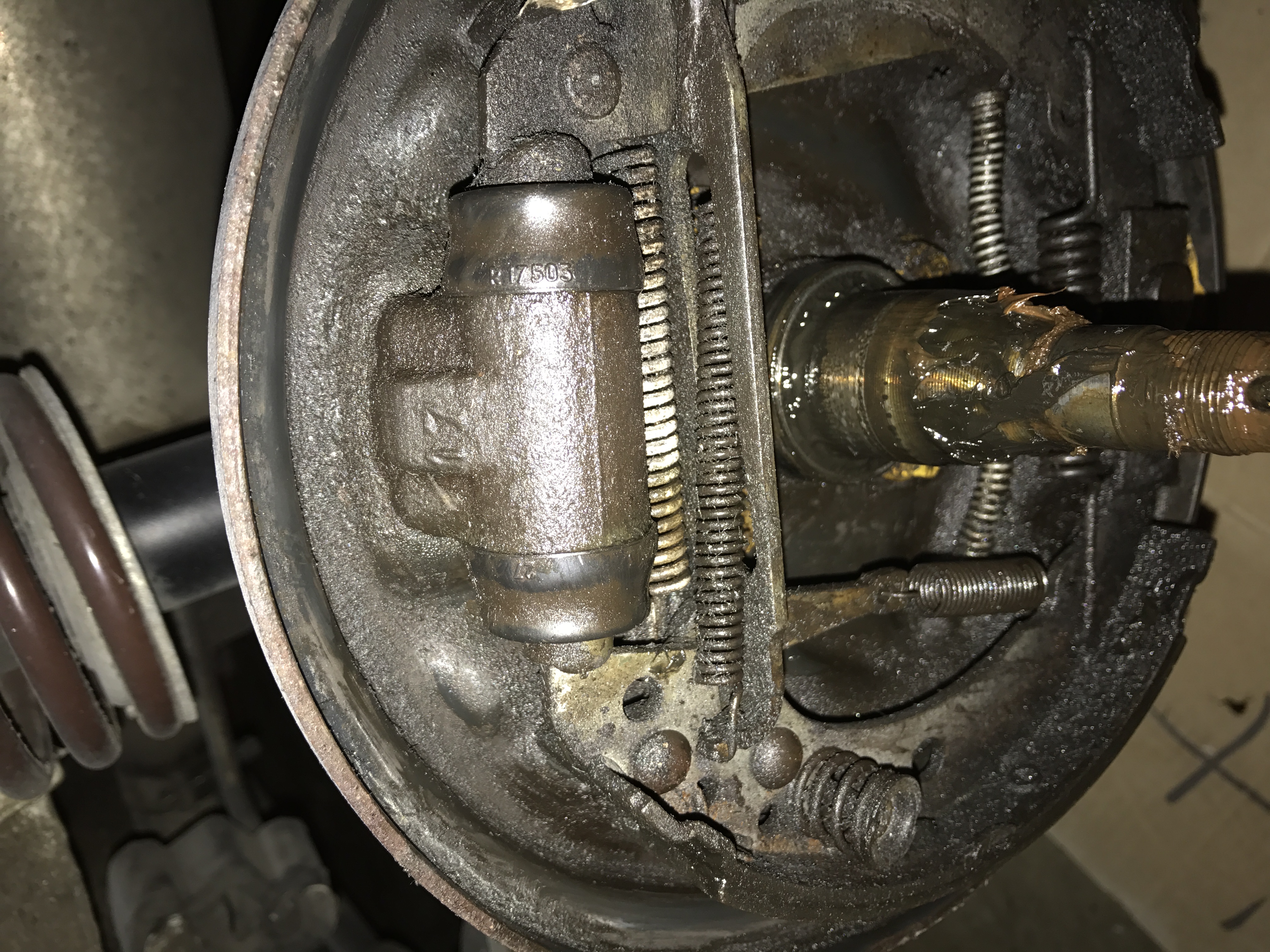 Je démonte pour regarder le diamètre du cylindre de roue et la surprise du gras partout....