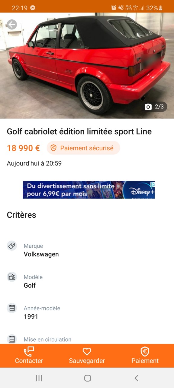 Voiture : Golf 1 cabriolet