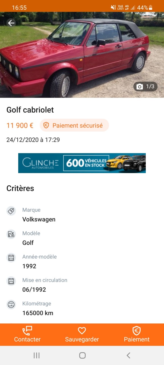 - Voiture : Golf 1 cabriolet