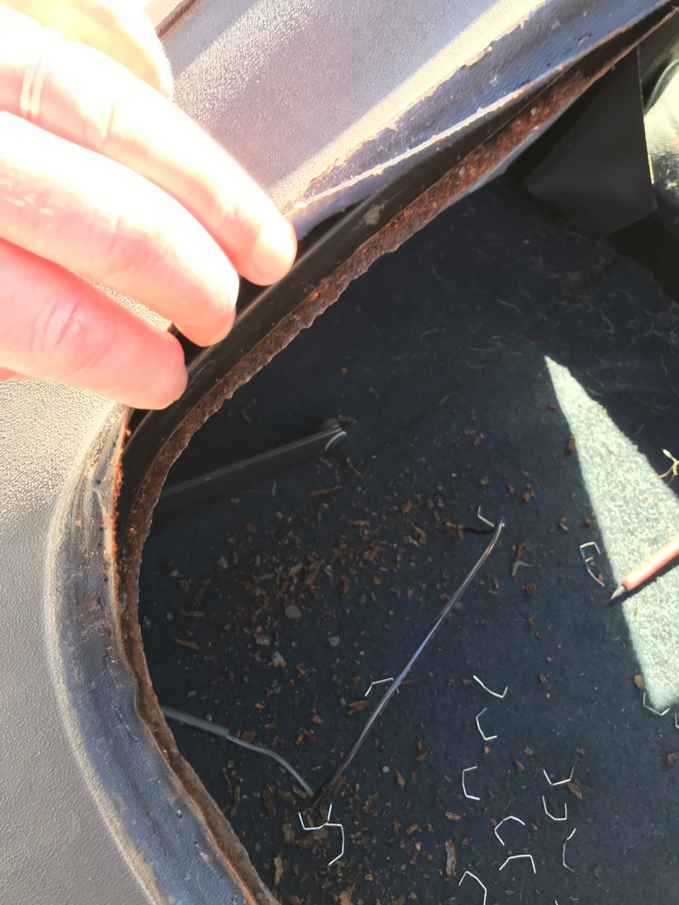 Tu peux t en faire une idée en passant ton doigt sous le joint en bas côté banquette. Plus tu sors de rouille, plus il est dégradé. Mais c est effectivement en retirant la lunette que tu verras l étendue des dégâts.