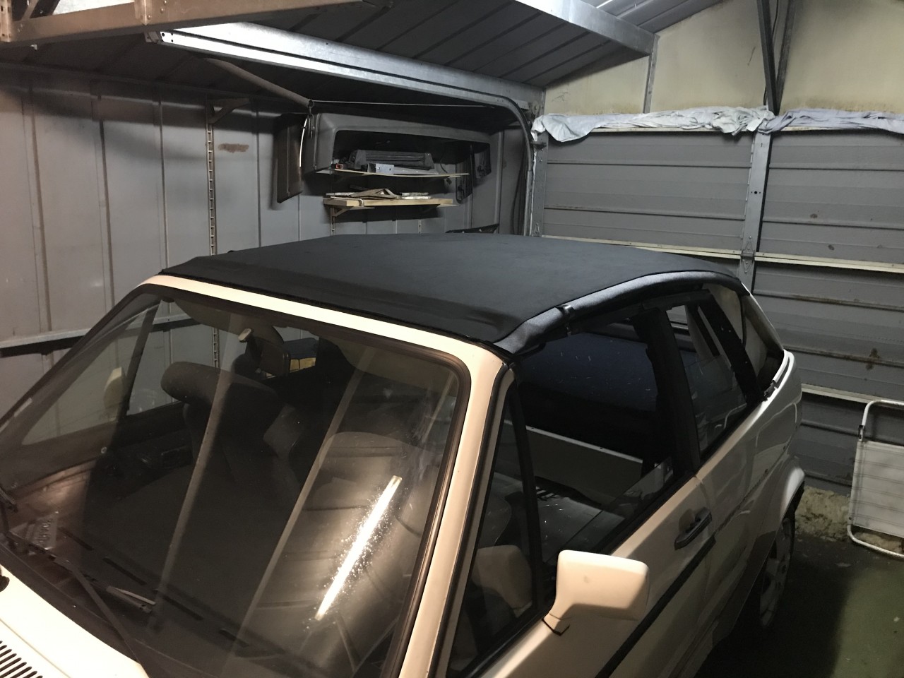 Ciel de toit décollé, matelassure HS et capote devenue noire au lieu d un bleu d origine