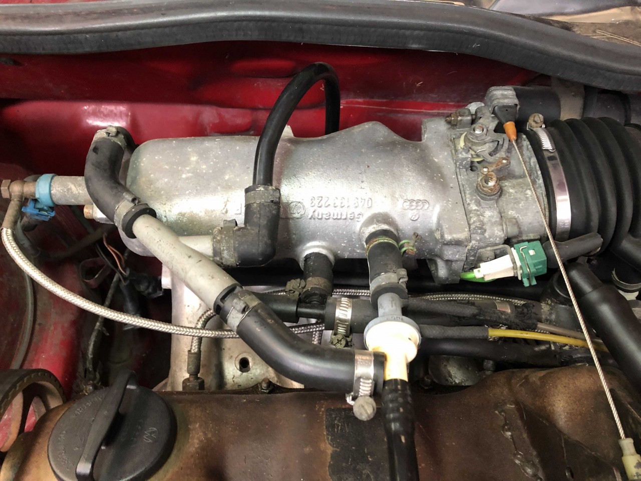 Sortant des 2 valves de depression, l'une des 2 durites n'est pas branché et il manquerait un raccord en T sortant de l'admission. C'est un golf US dont l'ancien proprietaire à retirer la clim.