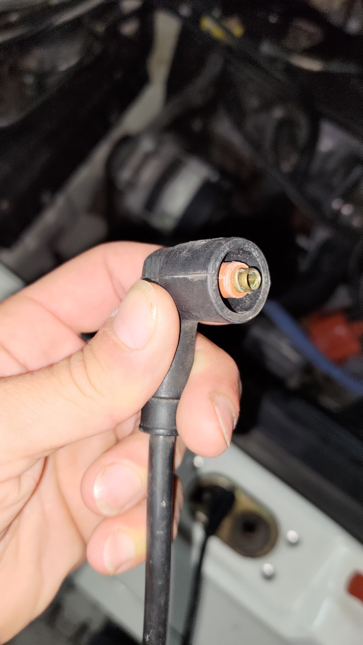Au remontage , la voiture ne tournait pas bien rondmais mieux qu'avant le nettoyage des injecteurs surtout sur le ralenti, et elle tournait parfois sur 3 cylindres... j'ai également jeté un oeil à l'allumage : la fiche provenant de la bobine sur la tête d'allumeur s'est littéralement désintégrée quand je l'ai touchée.... o_O
