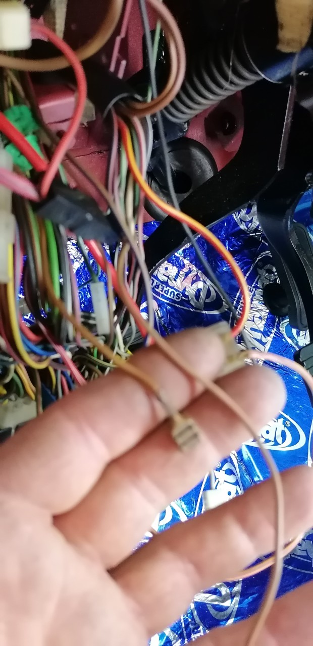 Concernant ce que tu m'as demandé, le vert / noir part de la fiche bleue, on le voit bien sur la photo et il a une cosse métallique non isolée. Les fils marron / noir et marron / bleu partent du relais en haut tout à gauche et ont des connecteurs mais je ne vois pas où ils peuvent se connecter. A priori je ne vois rien qui peut venir sur ce fil gris blanc... Ca avance pas mal quand même, on verra bien au moment du premier démarrage.